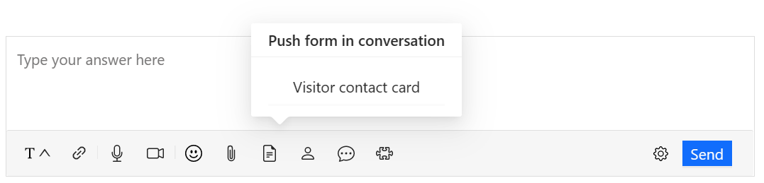 To push a contact card into the conversation select the option from the action menu: